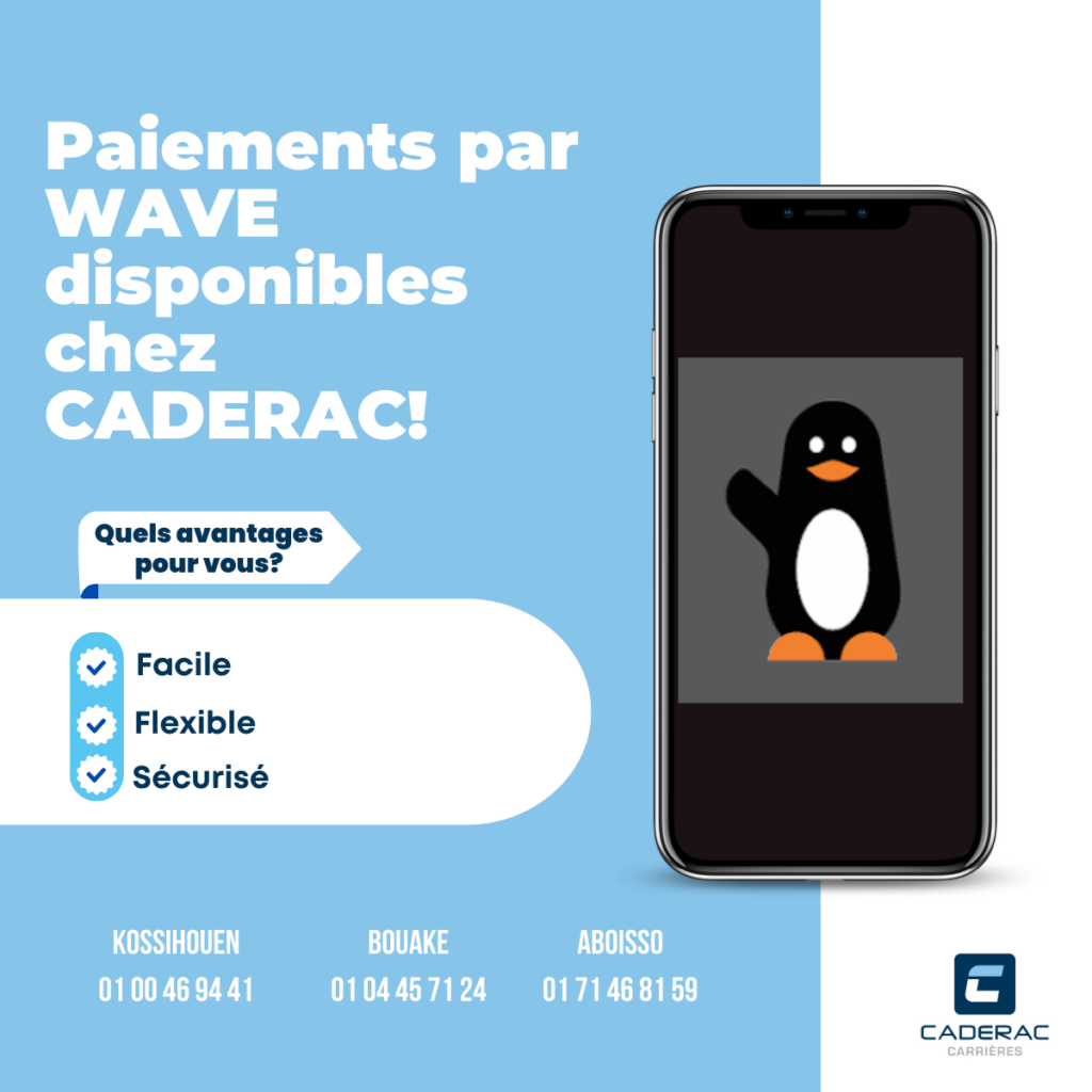Paiements par Orange Money et WAVE disponibles chez CADERAC !